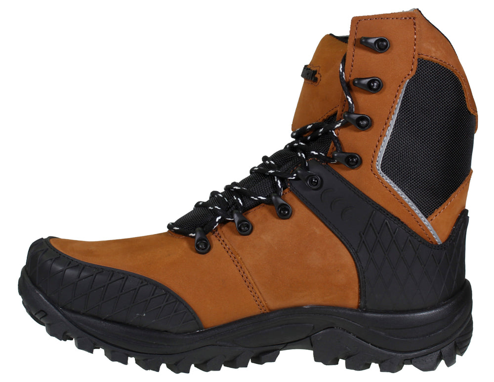 Un diseño vanguardista, te brinda seguridad en el trabajo y en tus aventuras del día a día, ideal para outdor, hiking, todo terreno 100% Vacuno Casquillo de poliamida, resistente al impacto Certificada con la NOM Puntera resistente Forro transpirable antimicótico Plantilla conformada en malla textil antimicótica, antiestética, brinda seguridad adicional confort y transpirable suela antiderrapante resistente a hidrocarburos y químicos ligeros Altura 22cm