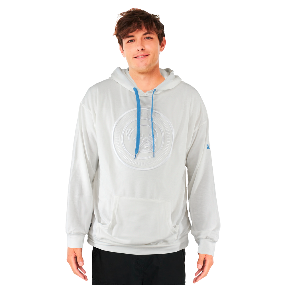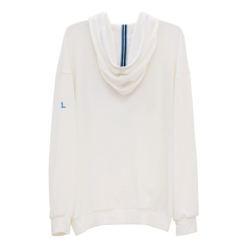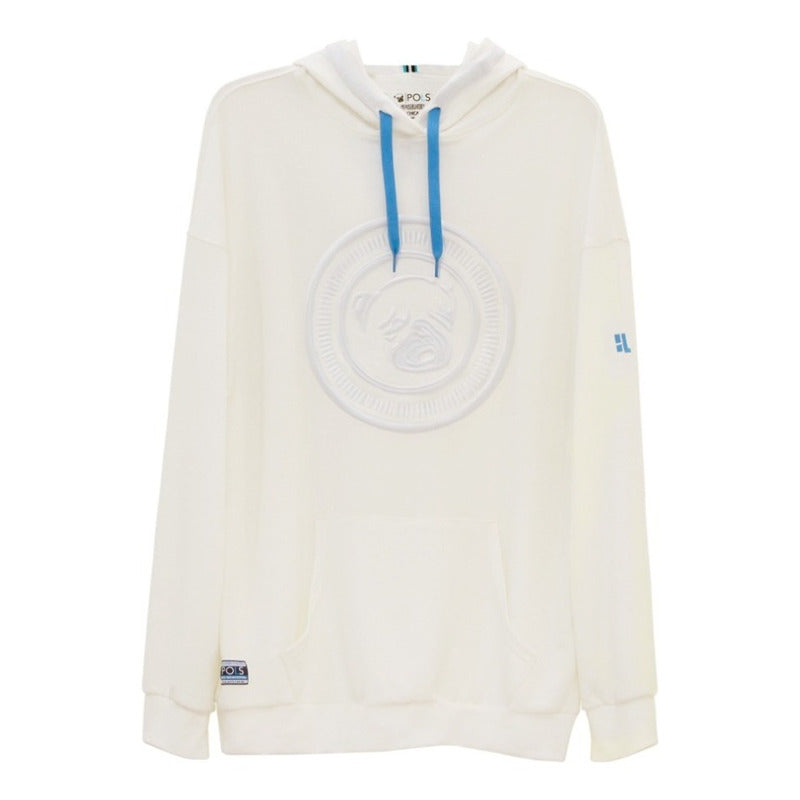 Sudadera holgada, para su comodidad, logo bordado con detalles en tono azul